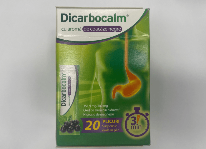 - Compoziție Dicarbocalm plicuri = hidroxidul de aluminiu + hidroxidul de magneziu